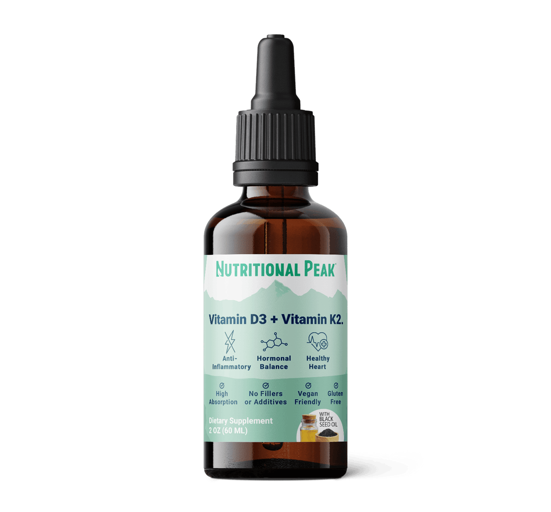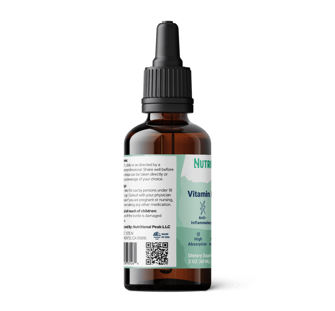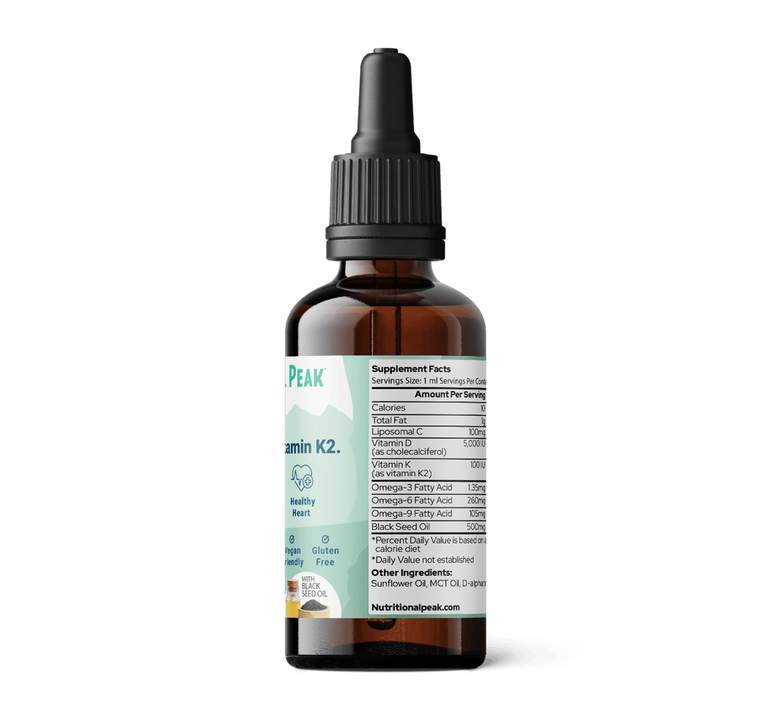 Nutritional Peak's Advanced Formula delivers a synergistic blend of essential vitamins and nutrients designed to support overall health. This liquid supplement combines Vitamin D3 and K2 to promote bone and cardiovascular health, Liposomal Vitamin C for enhanced immune function, and Black Seed Oil known for its antioxidant properties. The convenient liquid dropper allows for flexible dosing and improved absorption, making it an excellent addition to your daily wellness routine.